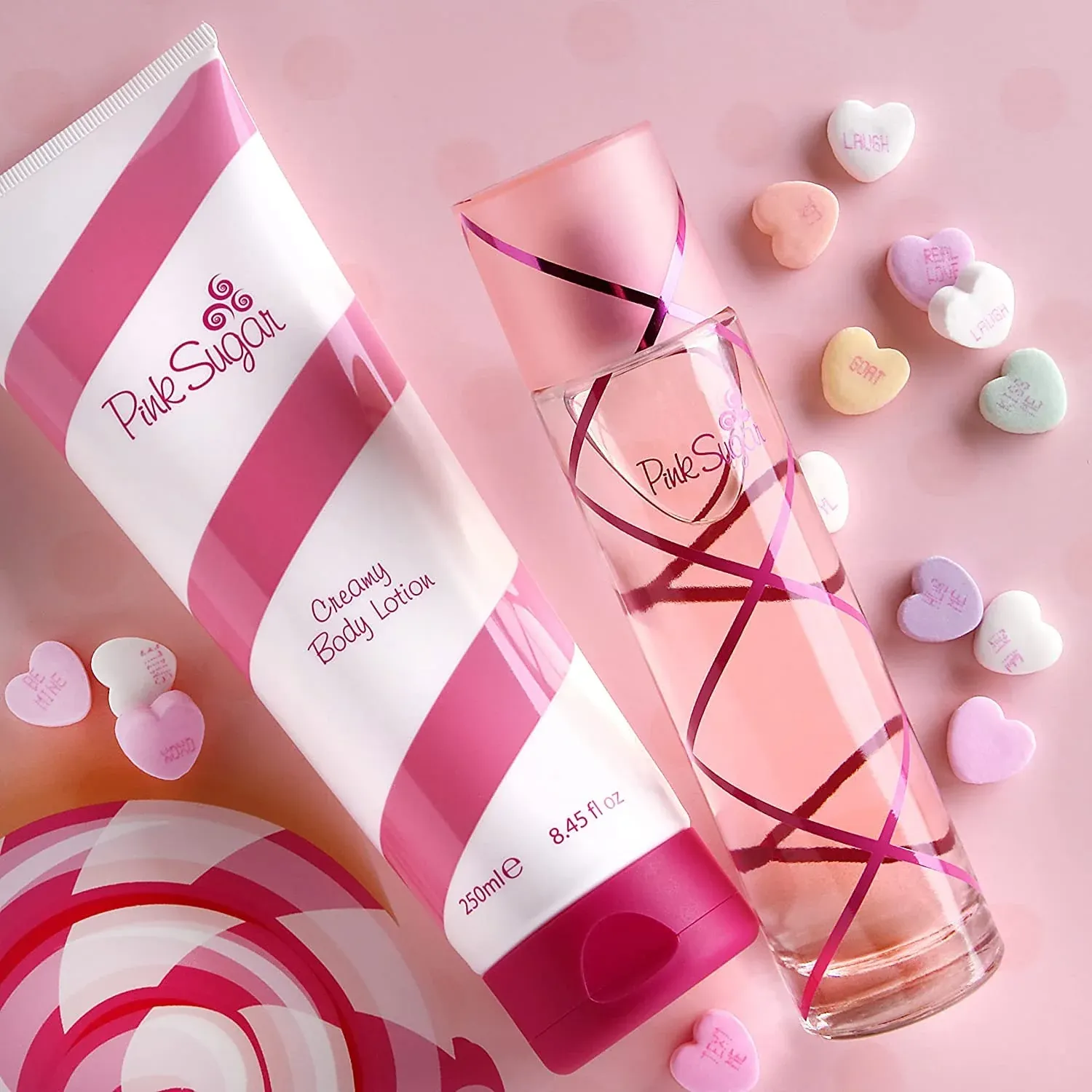 This travel set includes a generous 100ml bottle of Pink Sugar EDT and a convenient 25ml travel spray.