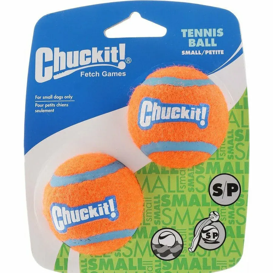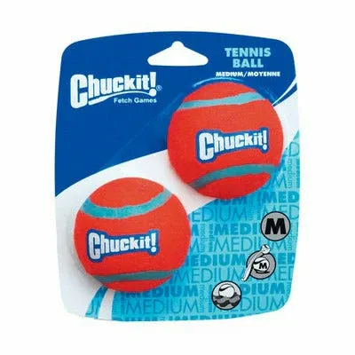 Designed to fit into the classic Chuck It Ball Launcher, this pack of 2 Medium replacement tennis balls will give your dog hours of fun and exercise. Whether used alone or with a Chuck It Launcher, these brightly colored Tennis Balls are easy for your dog to spot in the park or field. Dogs love to chase and fetch, so balls are always welcome in their world!