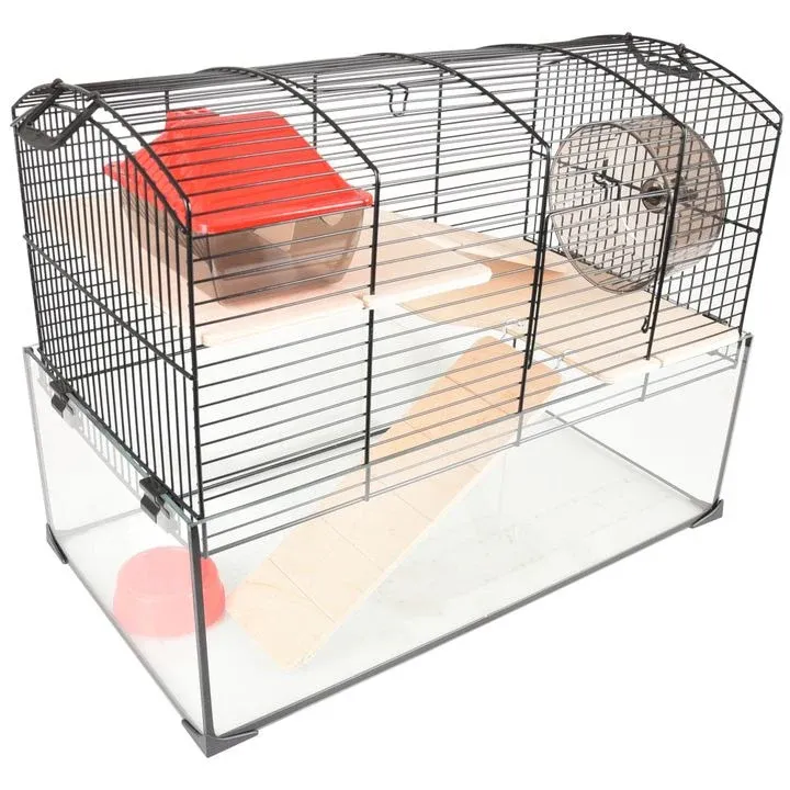 - Includes platforms, ramps, running wheel, shelter and feeding bowl