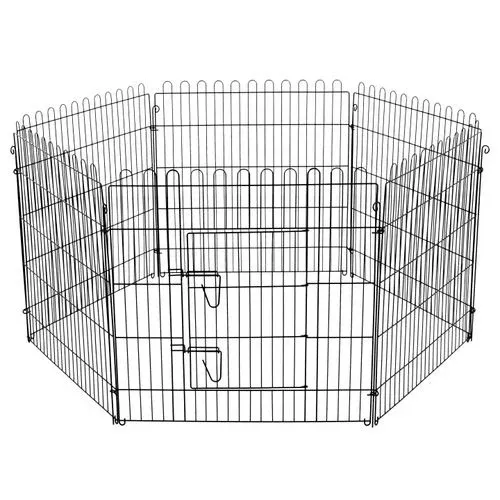 This sturdy metal puppy pen is perfect for puppies and small dog breeds. With a handy powder coating and easy assembly, it is the ideal solution for both indoor and outdoor use. Door with 2 sliding locks provides extra security. Easy to store and extra stability with mounting pins.