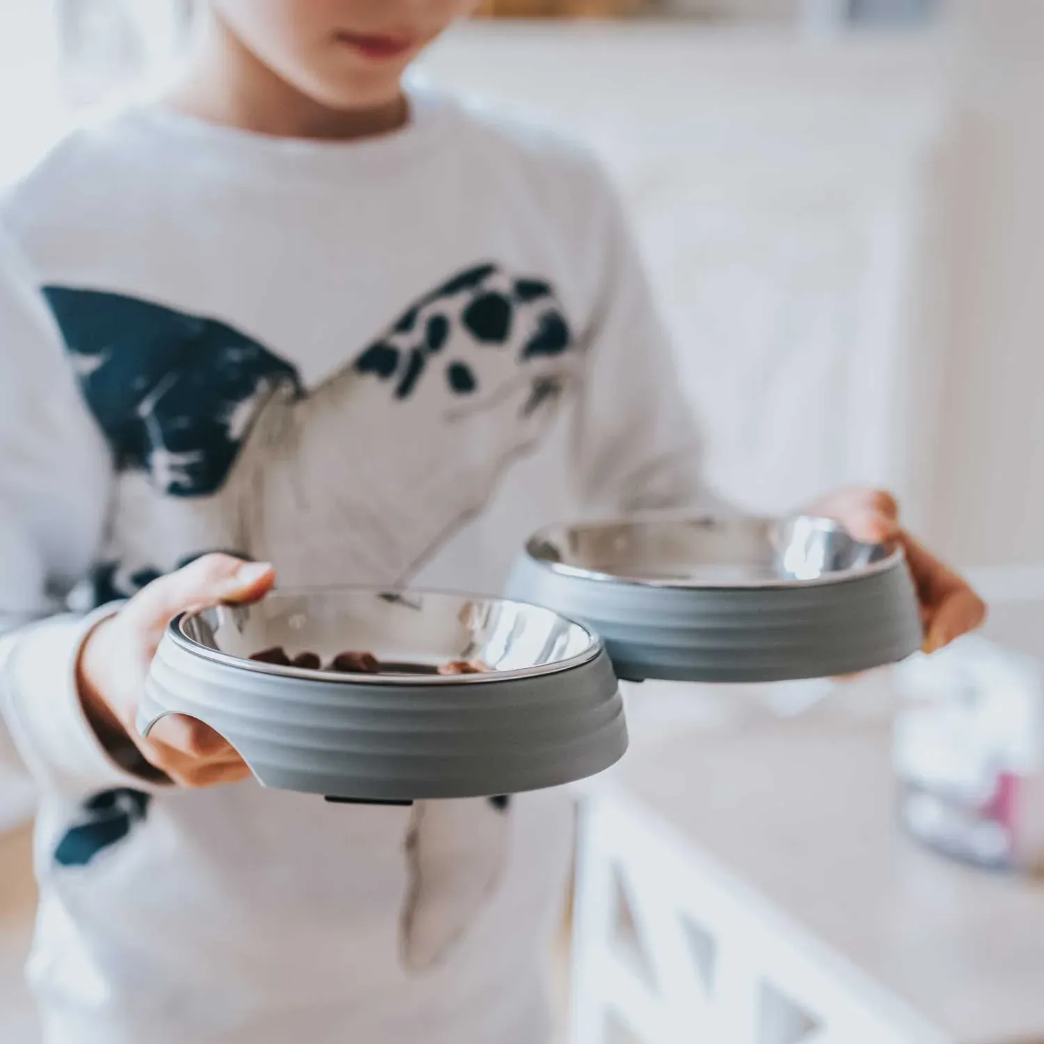 Puristic with style: That is ATLANTA. The harmonious colour and the elegant form fit almost everywhere. The special bowl for cats has a flatter shape than other bowls so that the sensitive tactile hairs do not touch the rim of the bowl. The melamine bowl is not only chic, but above all it is scratch and impact resistant and particularly easy to clean. The removable stainless steel inner bowl is very practical. Rubber attachments on the bottom of the bowl ensure a secure stand and prevent the bowl from slipping when the cat eats or drinks excessively. The bowl can be simply wiped out or cleaned in the dishwasher.