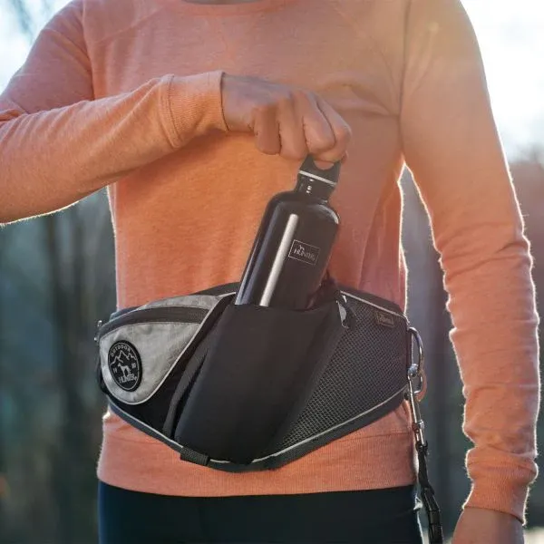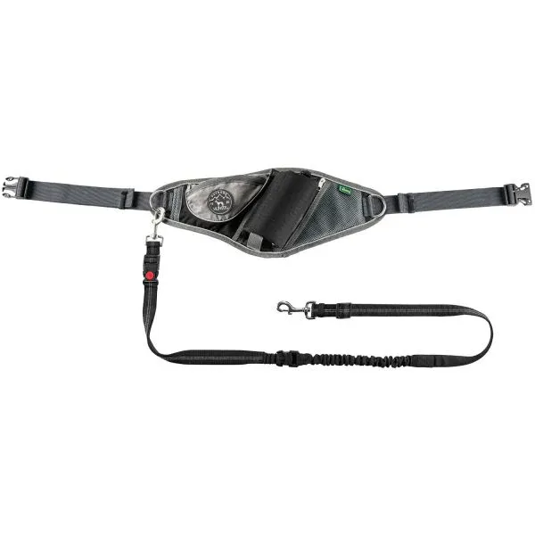JASPER is the ideal companion for people and dogs on active walks and long hikes with their four-legged friends. The belt bag with anti-retraction leash meets the need for comfort and versatile storage space in equal measure. Thanks to its ergonomic shape, the »belt« can be worn according to personal preference. Whether on the belly, on the lower back or on the side of the hip – the softly padded belt bag adapts perfectly to the body and allows relaxed walks with the four-legged friend. The included leash can be hooked into one of the two large D-rings and skilfully absorbs unexpected pulling and jerking movements thanks to the elastic insert. Well thought-out details such as the integrated strap with a small key carabiner or the attachment option for a drinking bottle for two and/or four-legged friends add extra value to this must-have for outdoor use.