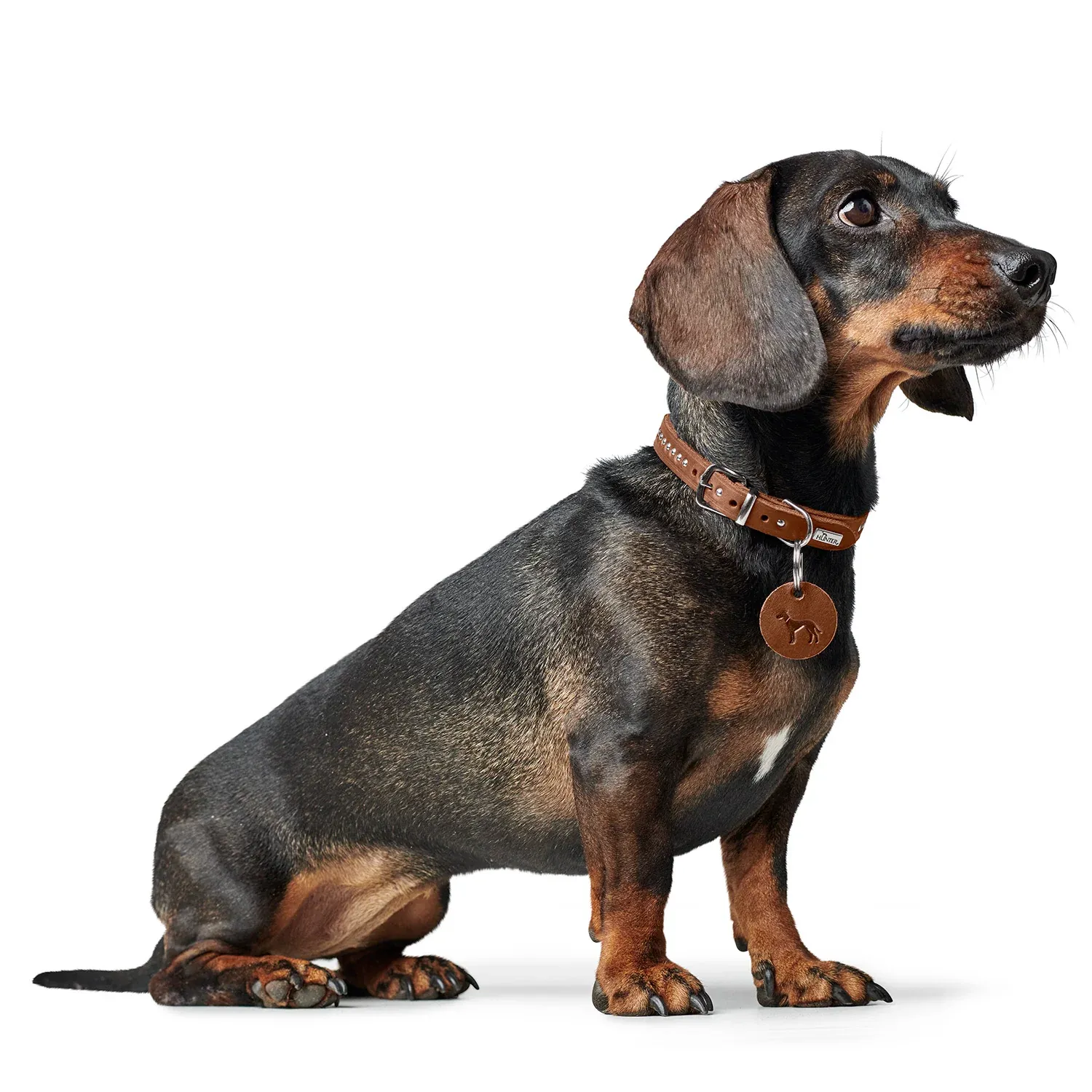 Our AALBORG series has a stylish new addition. The classic AALBORG dog collar, made of especially heavily greased soft full-grain cowhide, which is not only robust but also comfortable to wear, gets a fashionable upgrade with a cool rivet trim. AALBORG STYLE is just the right accessory for small, four-legged fashionistas who like things uncomplicated. Note: Our leathers are manufactured as gently as possible. With dyed leather, there may initially be slight, fading discolouration.