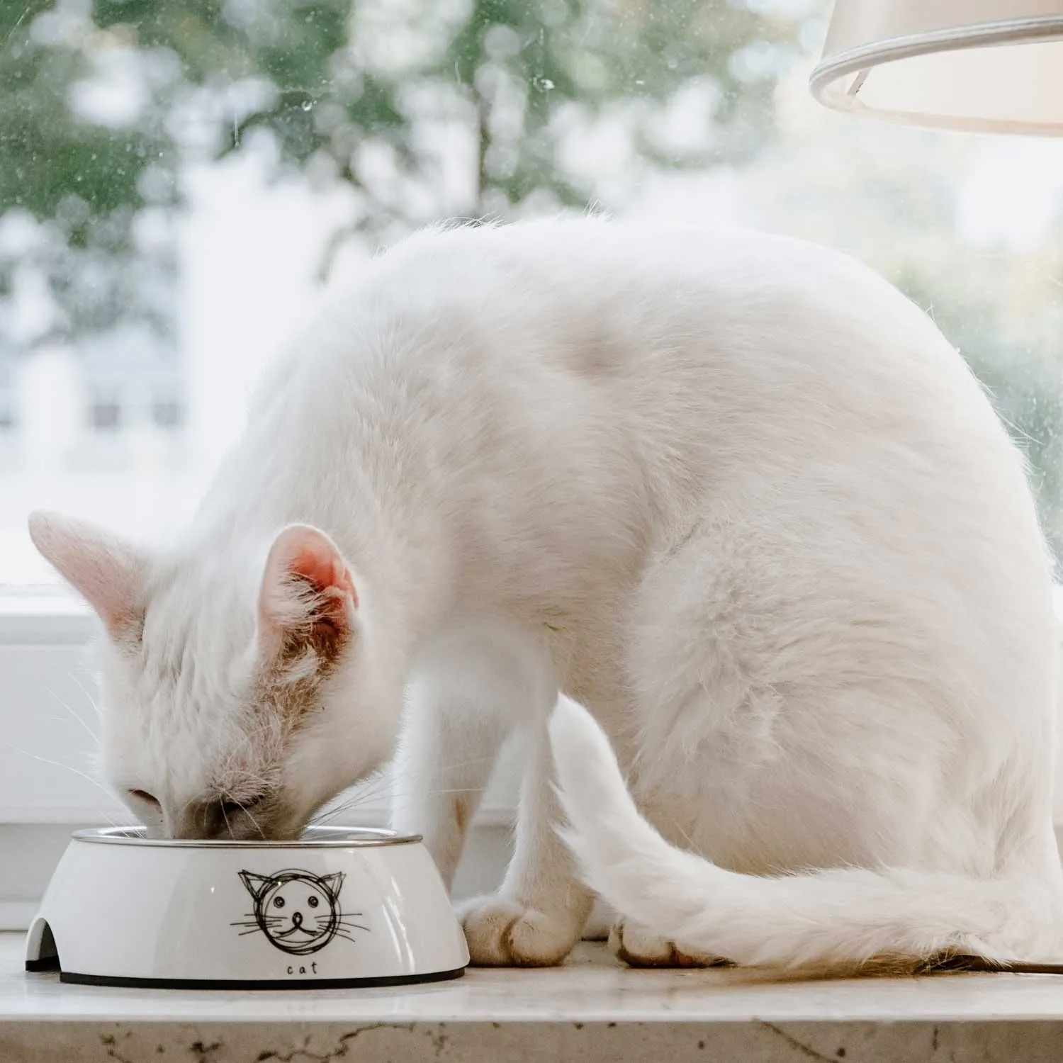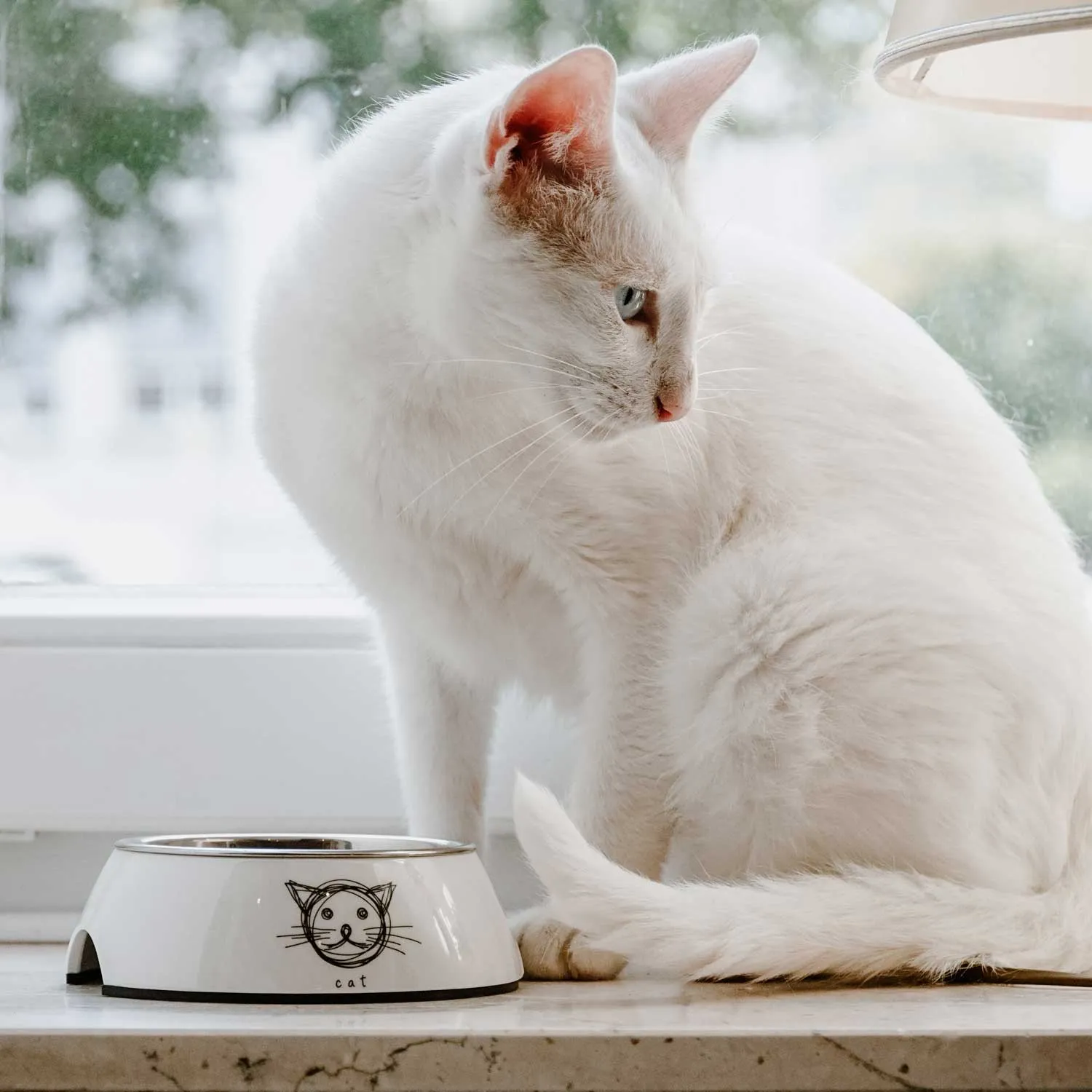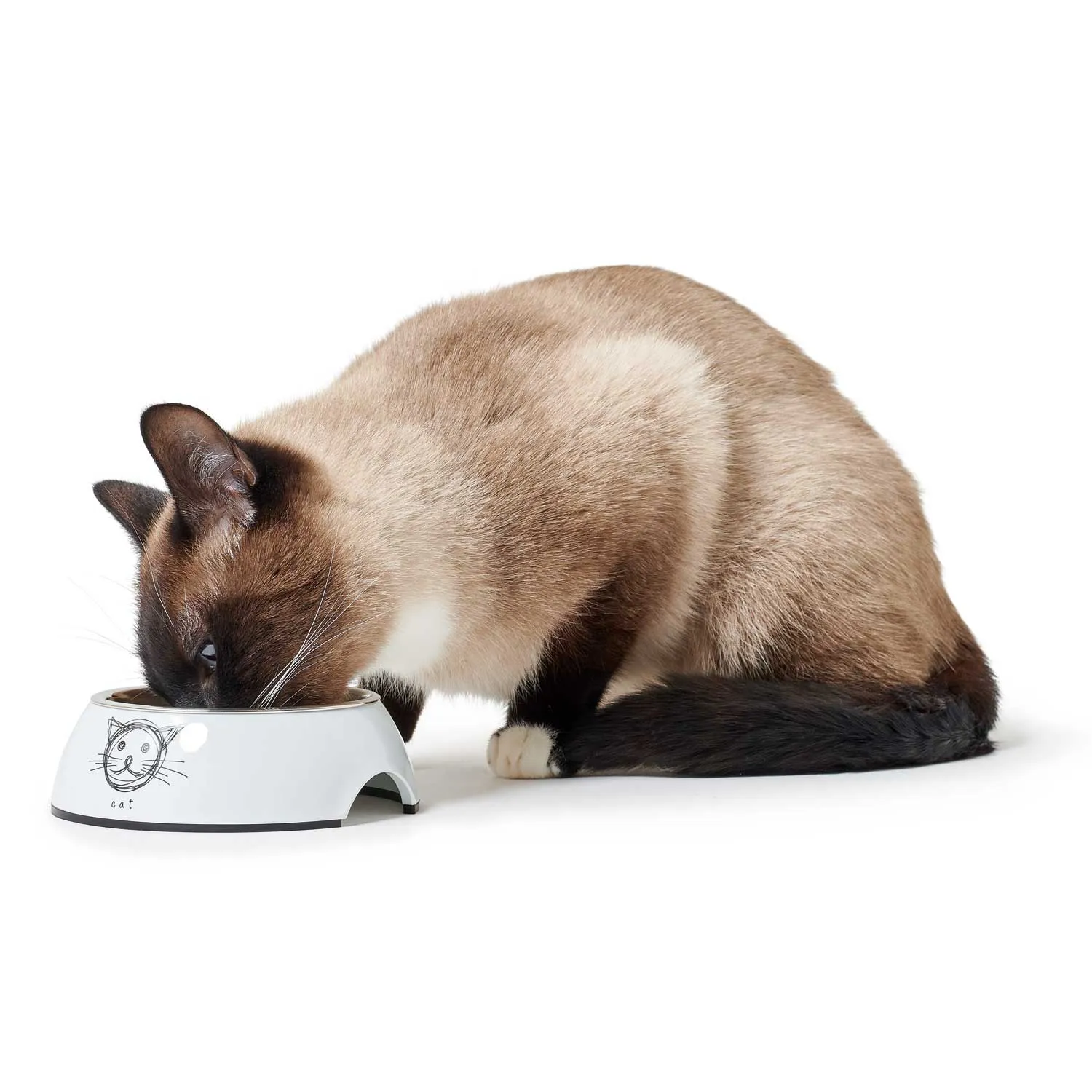»Everything for the cat«, especially the melamine bowl MILOS, whose exterior features a beautifully scribbled cat portrait. The melamine bowl is not only chic, it is also scratch and impact resistant and very easy to clean. The removable stainless steel inner bowl is very practical. A rubber rim all around the bottom of the bowl ensures a safe stand and prevents the bowl from slipping when the cat eats or drinks excessively. The bowl can be easily washed or cleaned in the dishwasher.