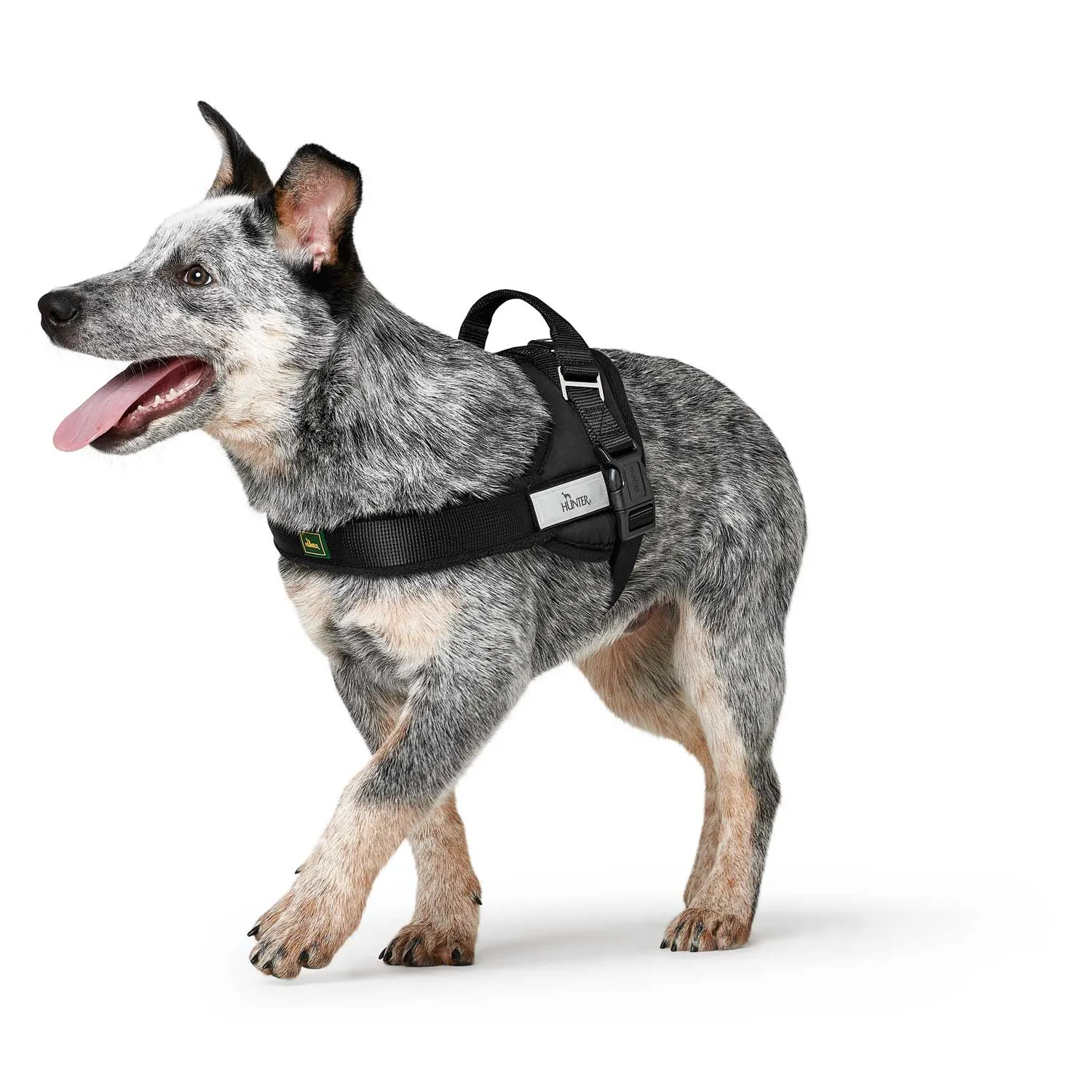 The material of the RANGER Norwegian harness is particularly durable and easy to clean, making it ideal for sports activities with your dog. Reflective elements on the straps increase both your safety and the safety of your dog. The RANGER Norwegian harness is particularly suitable if you enjoy doing sport with your dog, whether dog sports or having your pet accompany you as you train. Thanks to the excellent fit, the harness provides perfect control over your dog without restricting freedom of movement or the dog’s wellbeing. The RANGER Norwegian harness has a retractable hand loop on the back strap for you to grab hold of in an emergency. You can adjust the belly straps on the harness so that it fits your dog’s torso perfectly. The straps made of durable nylon fabric are padded with soft fleece in the chest and shoulder areas, making the RANGER Norwegian harness even more comfortable and gentle on fur.