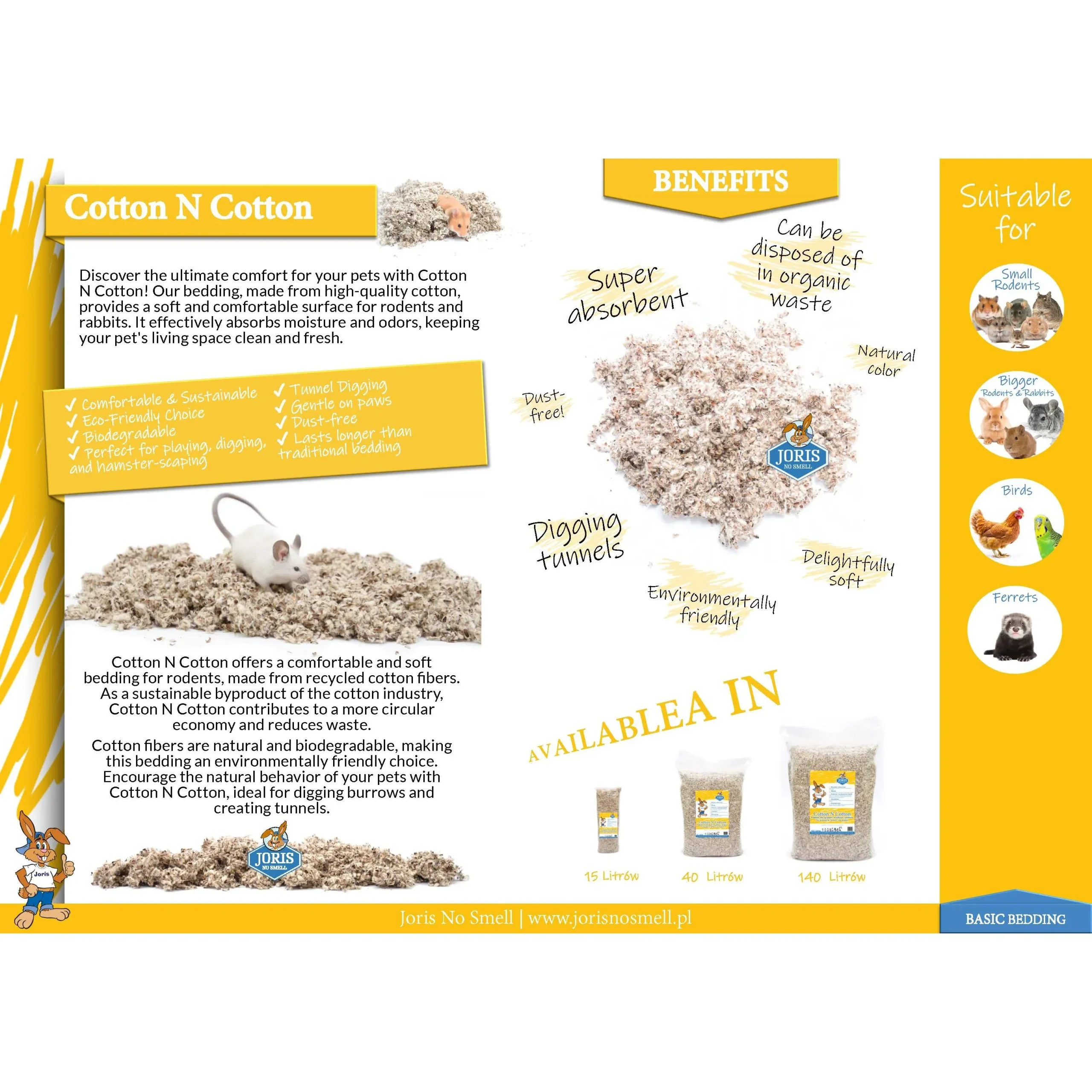 Cotton N Cotton offers a comfortable and soft bedding for rodents, made from recycled cotton fibers. As a sustainable byproduct of the cotton industry, Cotton N Cotton contributes to a more circular economy and reduces waste.
