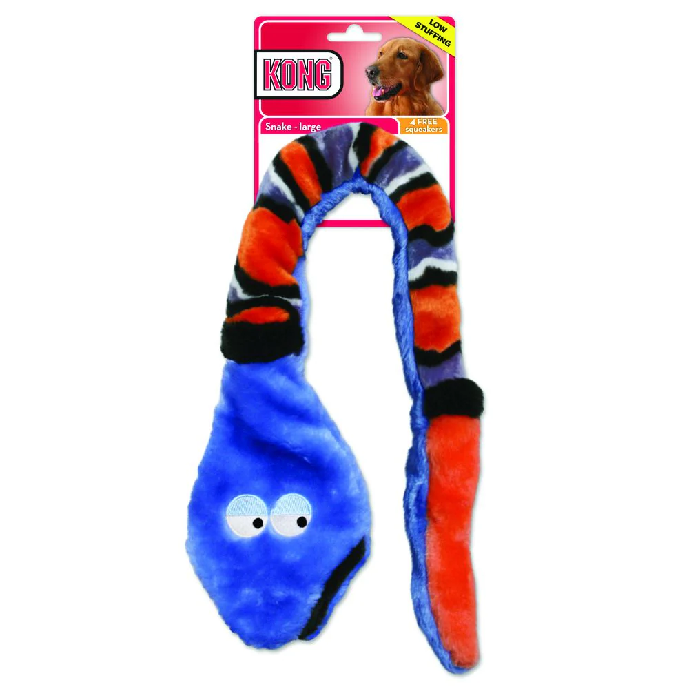The plush KONG Snake is made out of the high quality plush material. The inside has not stuffing for no mess. Each one of our KONG Plush toys come with a replaceable squeaker for continued fun.