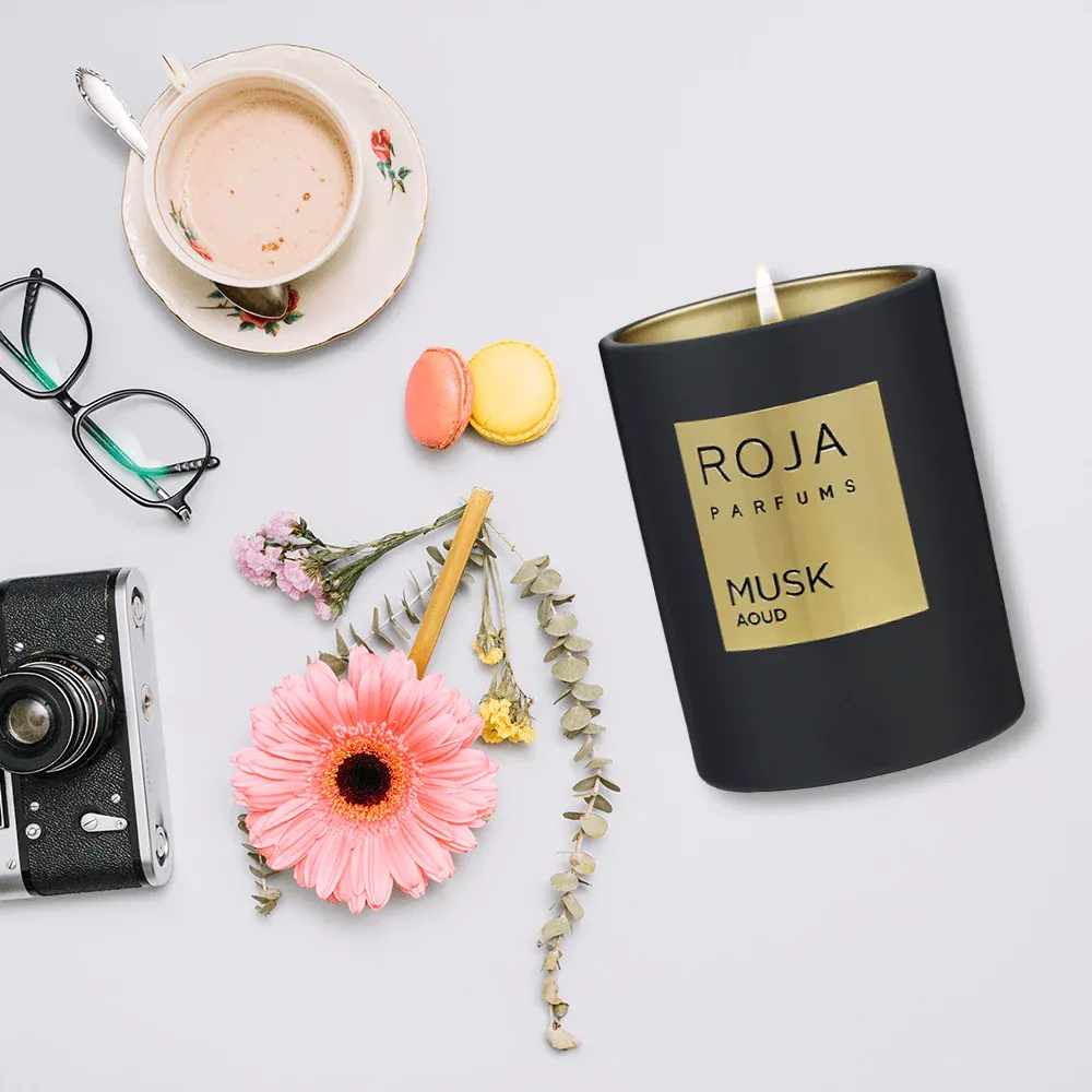 The Roja Parfums Musk Aoud Candle combines luxurious fragrance with exquisite craftsmanship, creating an inviting atmosphere in any space.
