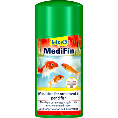 Multi-purpose remedy for tackling the most common ornamental pond fish diseases. Treats skin parasites such as Ichthyophthirius multifiliis, Costia, Chilodonella or Trichodina, as well as fungi, bacterial skin infections and fin rot. Tetra Pond MediFin also helps to treat wounds and all types of external injuries.