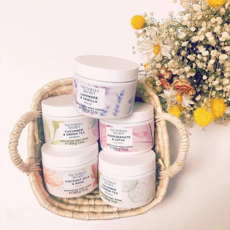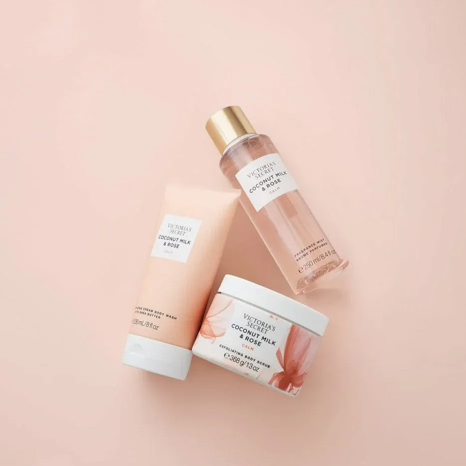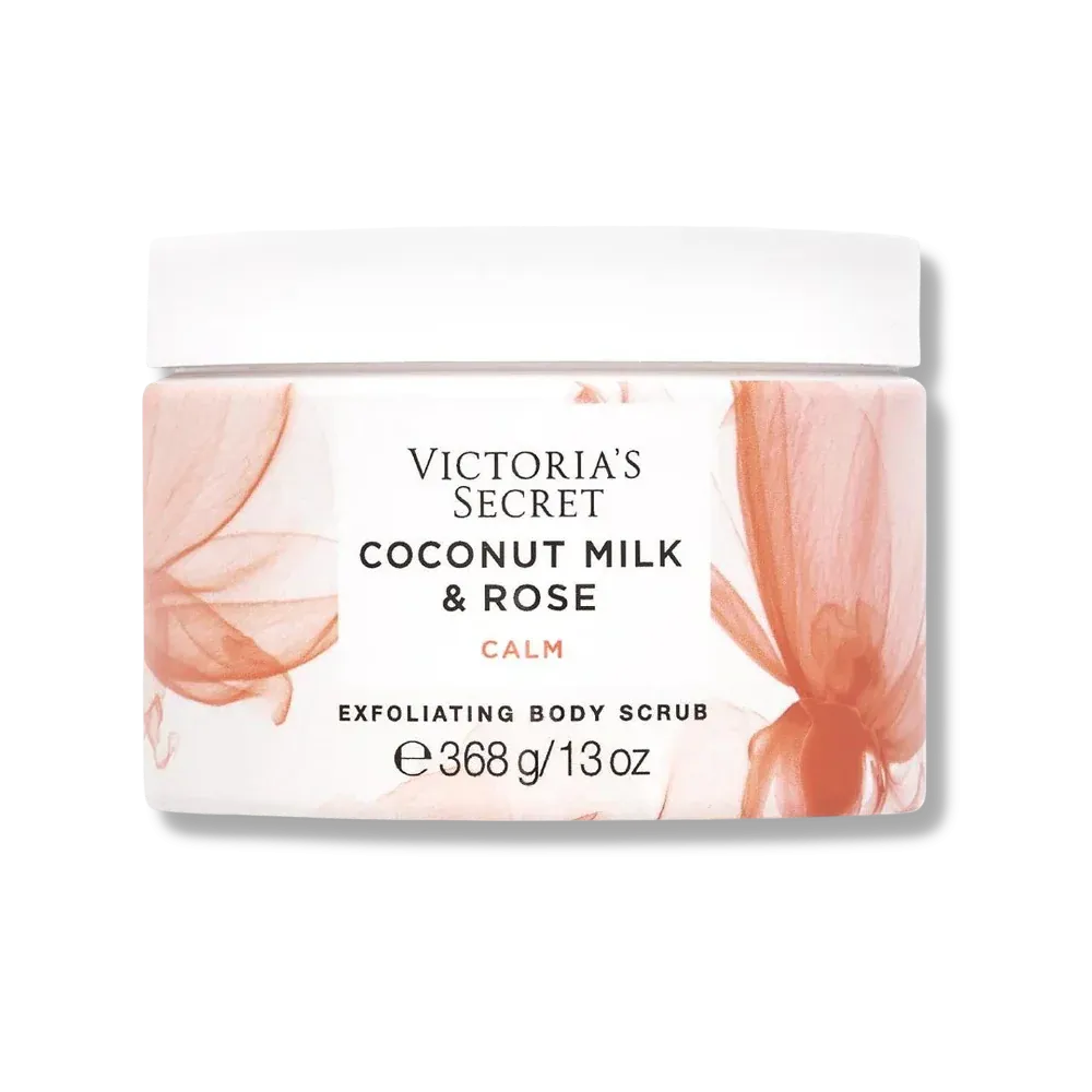 Indulge in the serene embrace of Victoria’s Secret Coconut Milk & Rose Calm Body Scrub.
